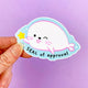 This is a laminated decal featuring our character, Edgar, proudly waving a Pride flag.