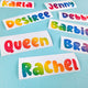 Holographic 2025 die cut vinyl decal featuring a retro pink font, 3.75" wide.