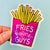 This is a holographic vinyl decal featuring "Fries Before Guys" in bright vivid colors.