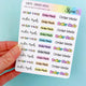This listing is for a sheet of larger sized abbreviated bubble letter days of the week stickers featuring a bright neon effect. These are perfect for "blackout" planning pages. These are up to 1.5" wide by .5" tall, and you will receive enough stickers for three weeks.