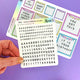 This listing is for these skinny alphabet stickers available in our traditional Shine pastel rainbow color palette. Each letter is about .5" tall. Available in two options: A-N and O-Z.