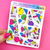 Printed on 3.625" x 4.5" sticker paper and kiss-cut for easy removal.