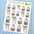 This listing is for one sheet of these adorable stickers featuring our hand drawn character, Star the Unicorn. Here she is holding a cardboard sign that reads "Will Work 4 Stickers", wearing a tie dye shirt with "I ❤️ Stickers", and holding a sign, "Planner Nerd" while wearing glasses. There are ten 3/4" tall stickers and eight 1" tall stickers. Ya gotta love Star!