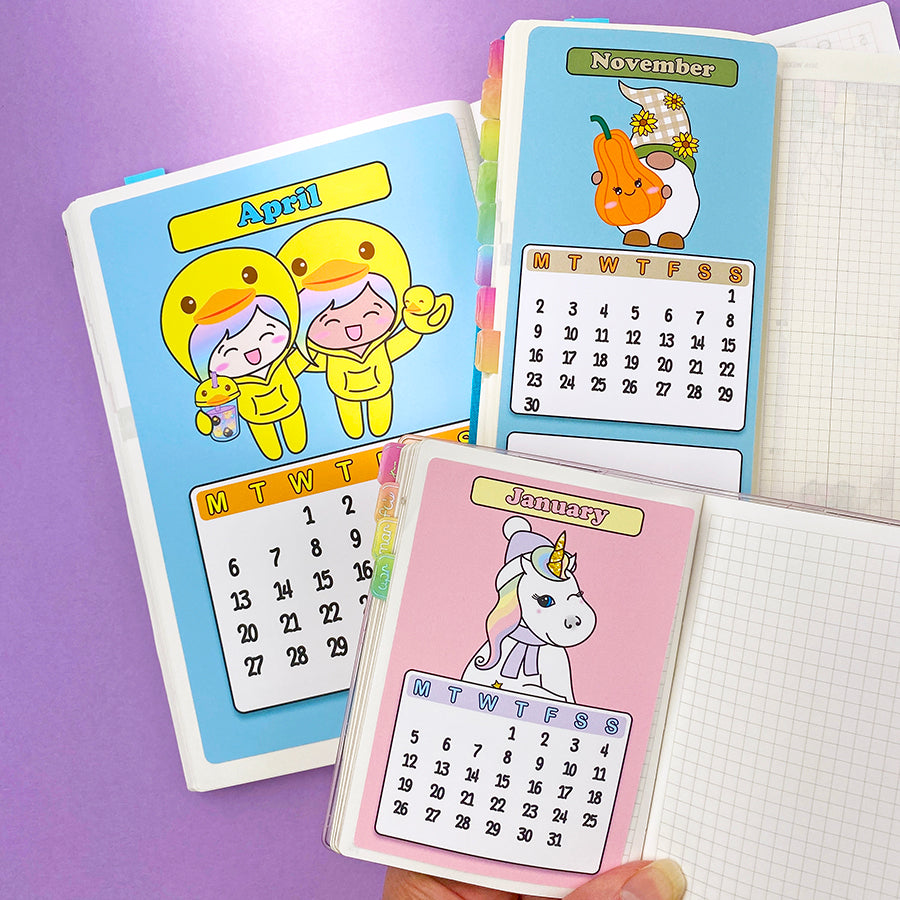 Use this big sticker to cover a page in your planner or bullet journal so you'll have the cutest spot for decorating each month of 2026! These are sized slightly smaller than the page, allowing for margins which makes for easier placement and centering. Choose your jumbo sticker sized from the following standard sizes: Passport, A6 (Hobonichi), Weeks (Hobonichi, TAS), B6, and A5 (Hobonichi Cousin).