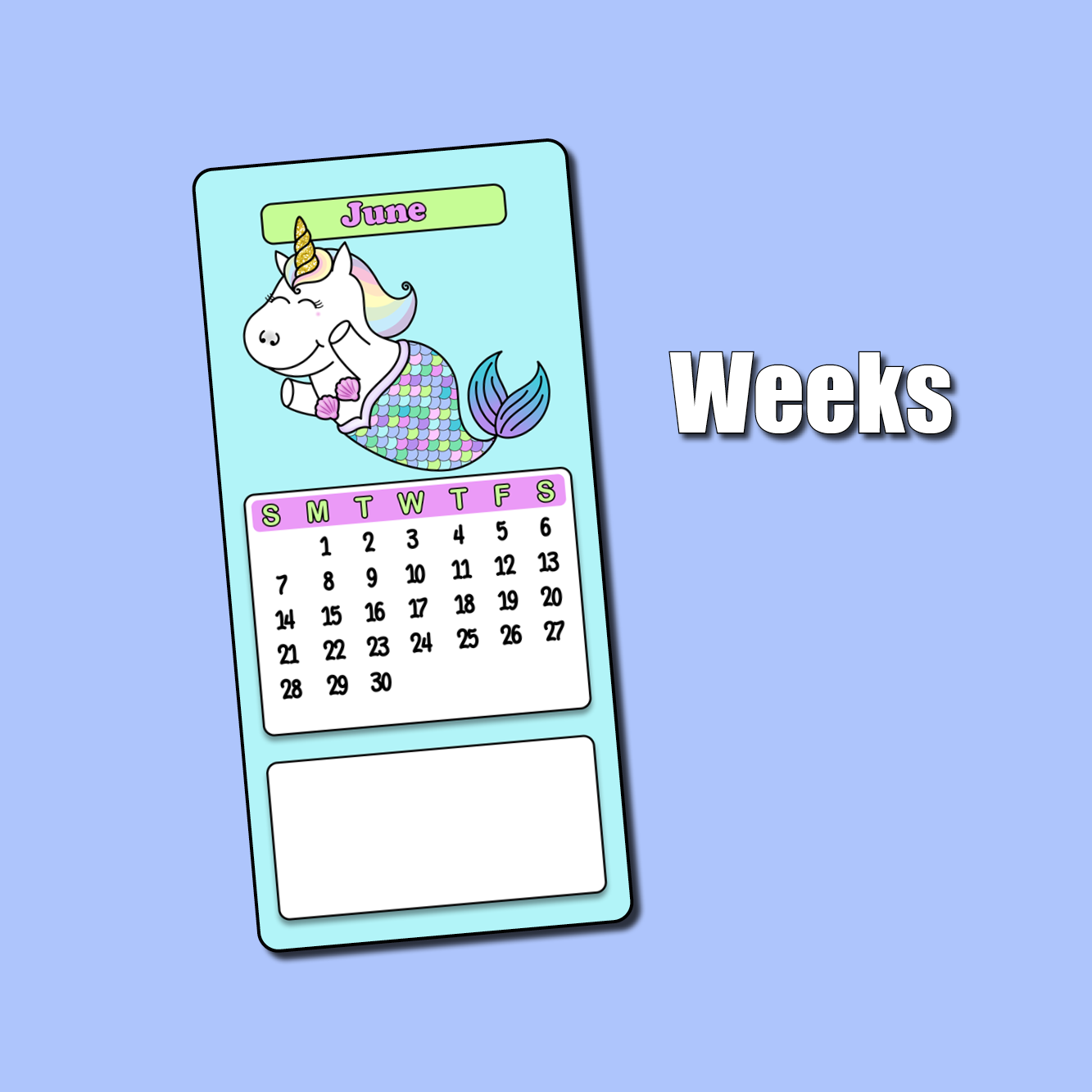 Use this big sticker to cover a page in your planner or bullet journal so you'll have the cutest spot for decorating each month of 2026! These are sized slightly smaller than the page, allowing for margins which makes for easier placement and centering. Choose your jumbo sticker sized from the following standard sizes: Passport, A6 (Hobonichi), Weeks (Hobonichi, TAS), B6, and A5 (Hobonichi Cousin).
