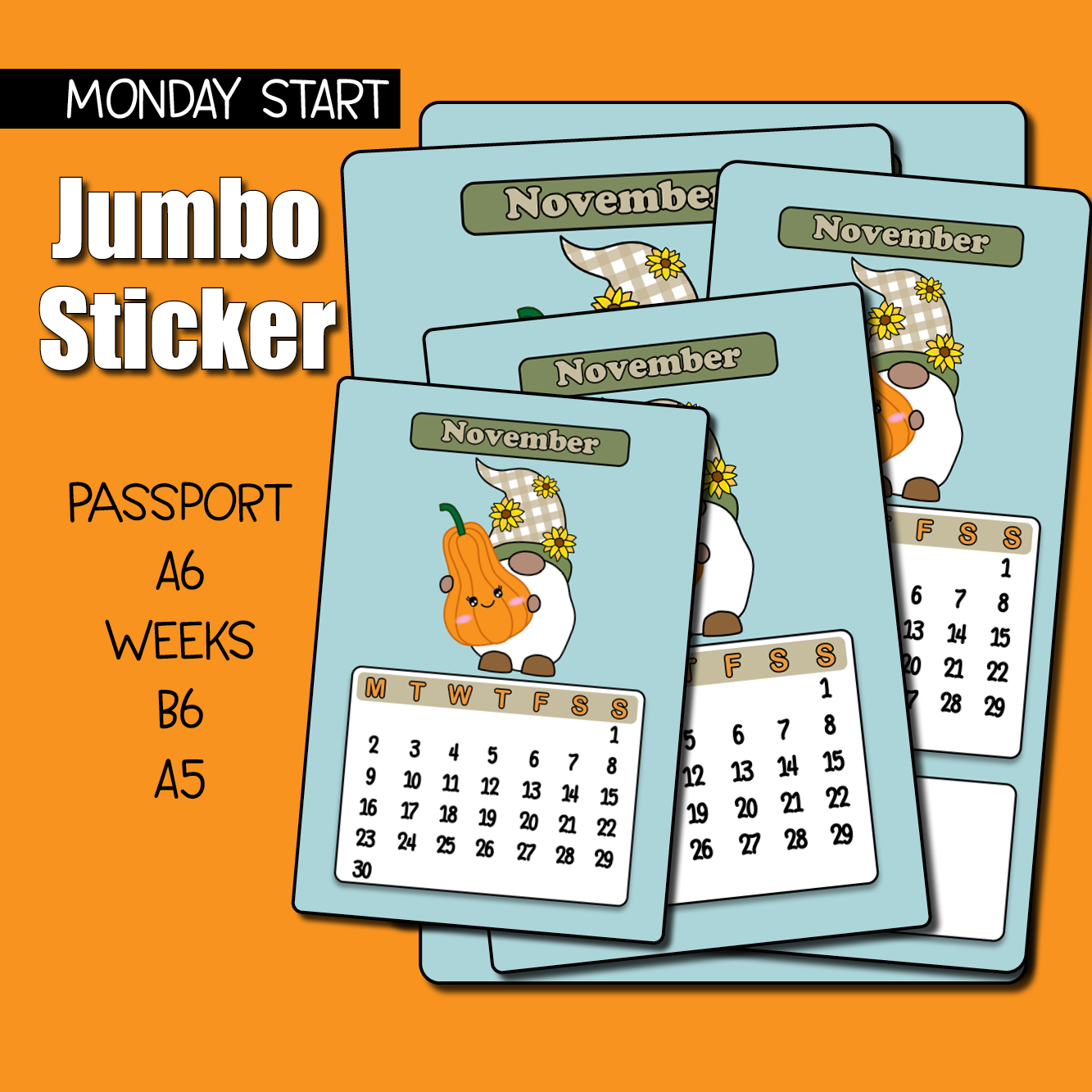 2026 November Calendar Jumbo Sticker - Monday Start
