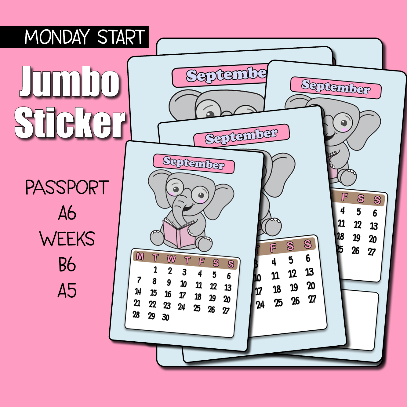 Use this big sticker to cover a page in your planner or bullet journal so you'll have the cutest spot for decorating each month of 2026! These are sized slightly smaller than the page, allowing for margins which makes for easier placement and centering. Choose your jumbo sticker sized from the following standard sizes: Passport, A6 (Hobonichi), Weeks (Hobonichi, TAS), B6, and A5 (Hobonichi Cousin).
