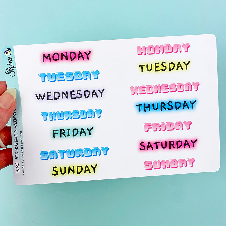 This listing is for a sheet of two sets of weekday stickers that match our 90s Nostalgia collection. The longest one is 2.5" long.