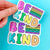 This adorable decal features the words "Be Kind" in a rainbow of colors. This is printed on our matte removable vinyl and laminated for extra protection. You have a choice to two sizes, 3" wide or 4" wide.