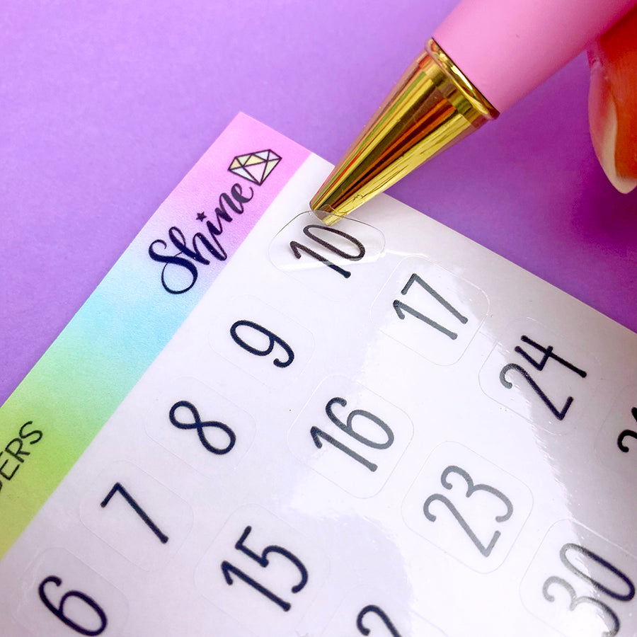 Use our new clear black weekday and date number stickers with these (as shown in the last photo) or write in the days with a pen.