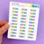 This sticker sheet features the word "Nails" in rainbow colored bubble letters, .27" tall by .74" wide. There are 30 stickers on the sheet.
