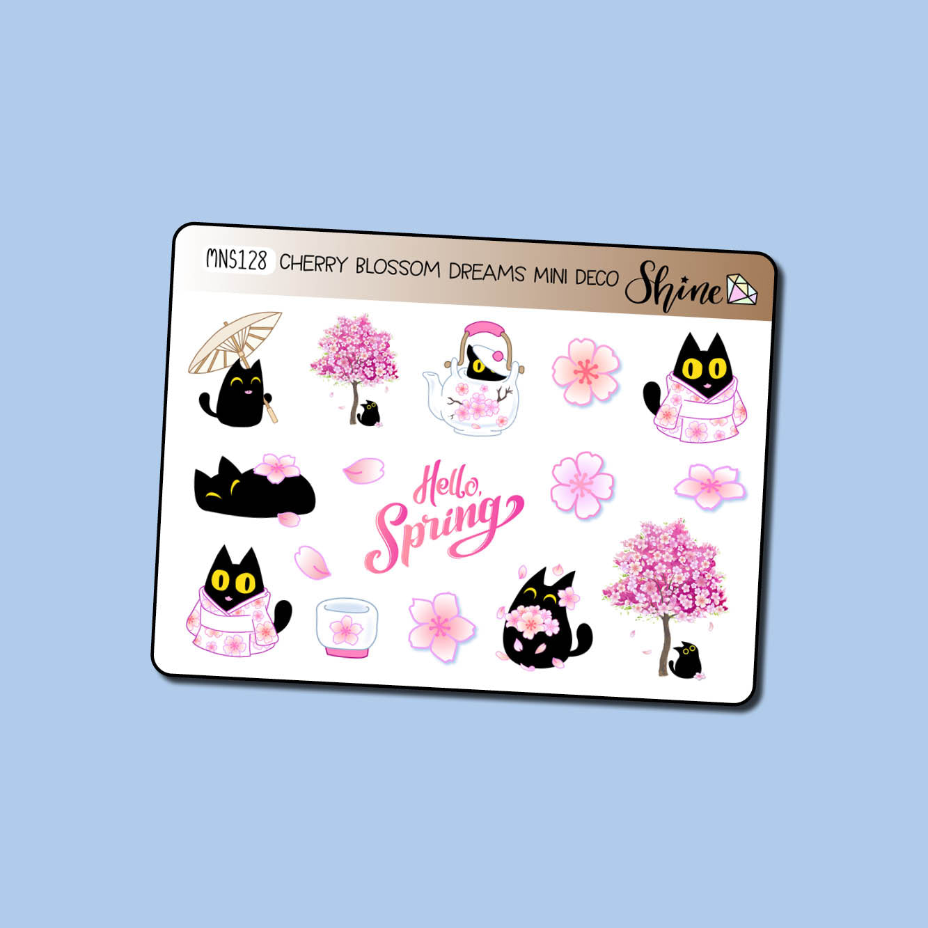 This listing is for one sheet of adorable decor stickers featuring elements from our Cherry Blossom Dreams collection. These stickers are small enough to fit the Hobonichi Weeks pages, approximately .75" in height.