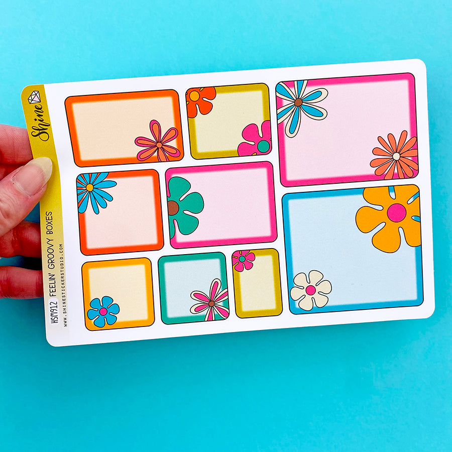 This listing is for this sheet of functional box stickers in a variety of sizes that match our Feelin' Groovy collection.