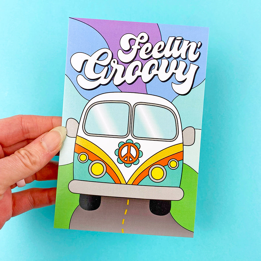This listing is for one printed dashboard/journal card featuring artwork from our Feelin' Groovy subscription. These are approximately 4x6" and feature a glossy finish. These are printed on one side, the backside is blank.