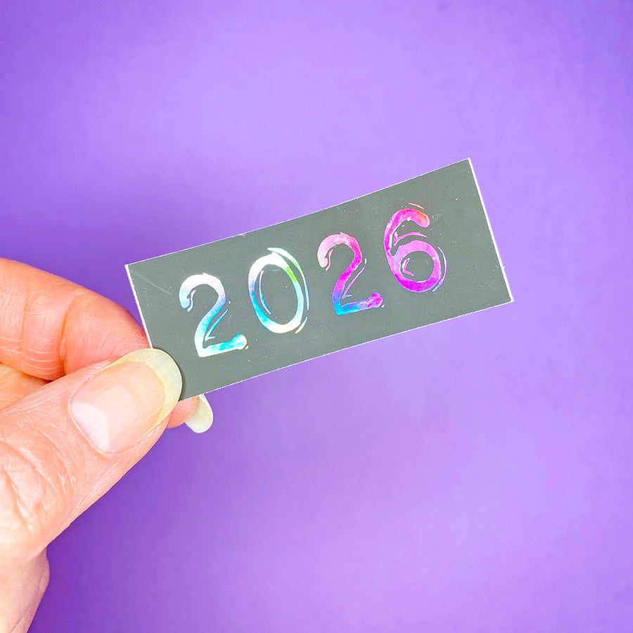 This listing is for one 2026 holographic FOIL sticker die cut. These are black with holographic foil. These are from our November 2025 subscription.