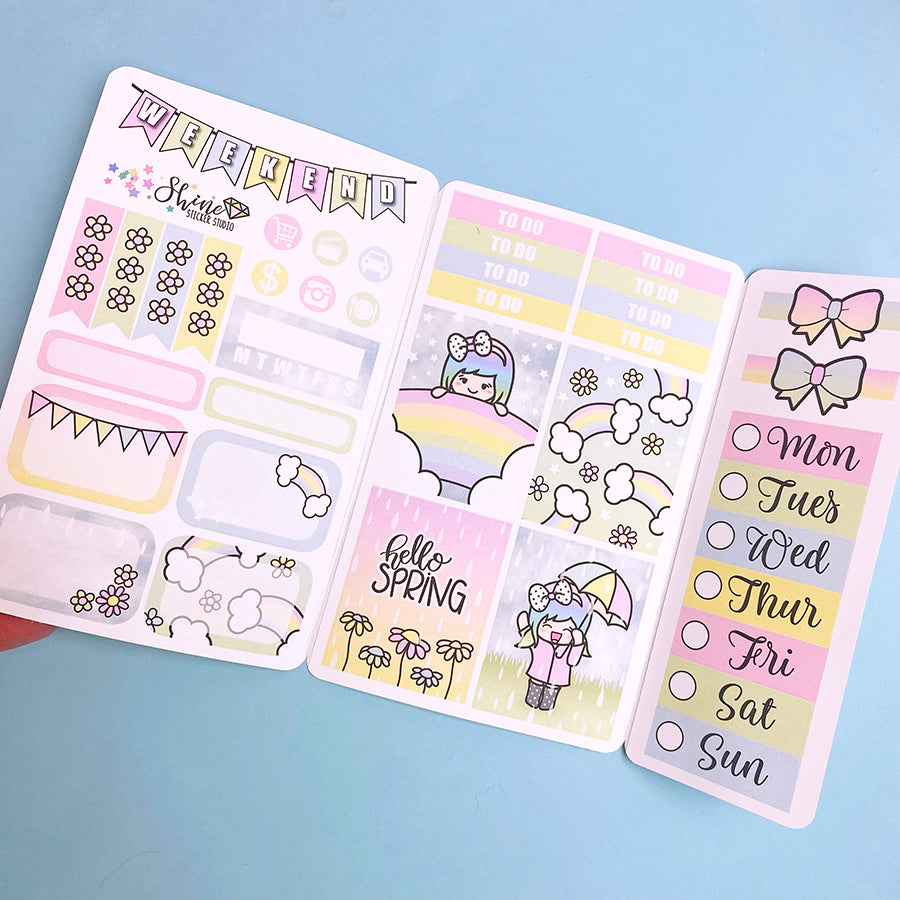 This listing is for one weekly sticker kit in our old formatting, sized to fold and fit into a pocket sized planner or traveler's notebook. This features elements from our original Luna Winter collection.