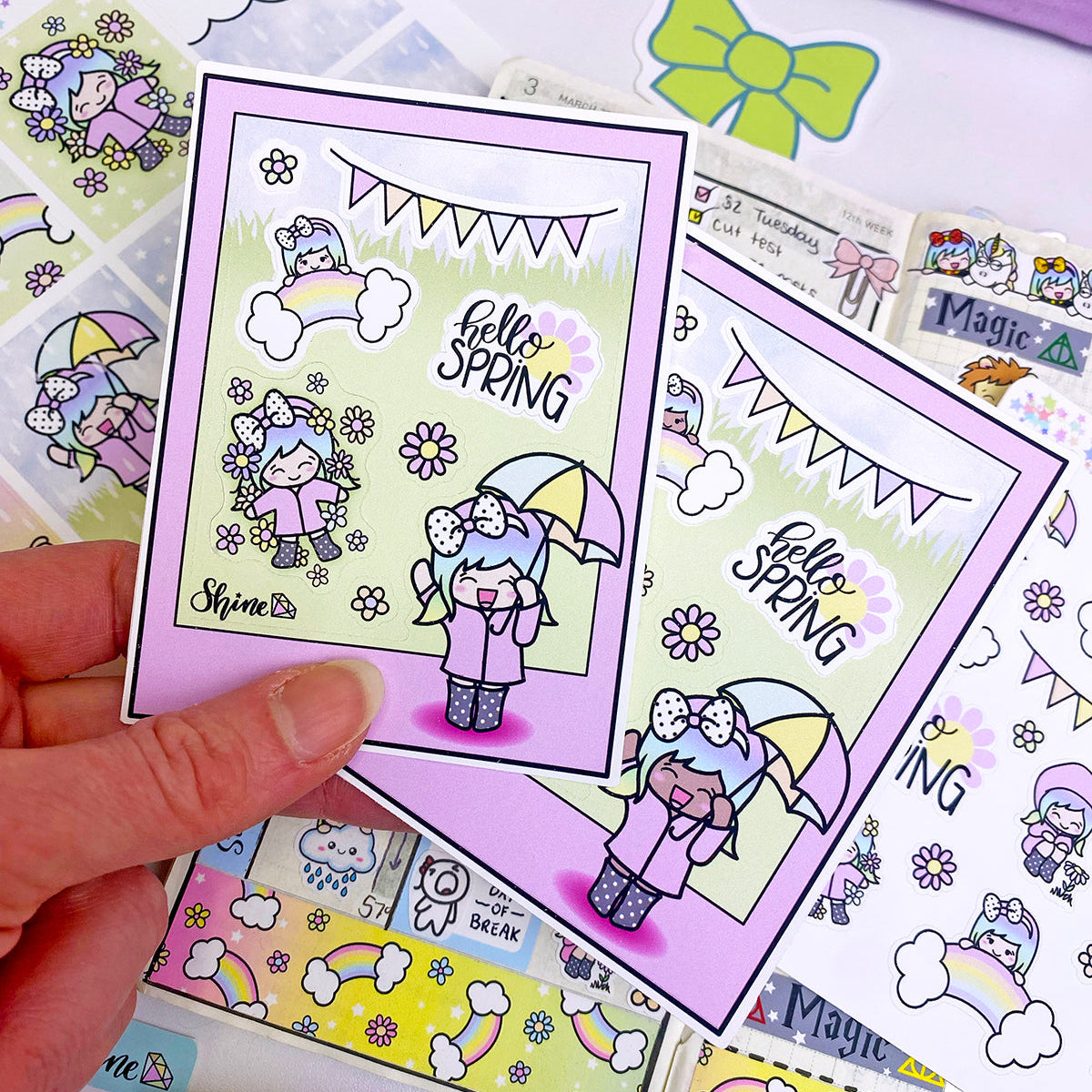 This listing is for an adorable sticker sampler featuring elements from our old Luna Spring kit. This is 3x4" and printed on our premium matte sticker paper.