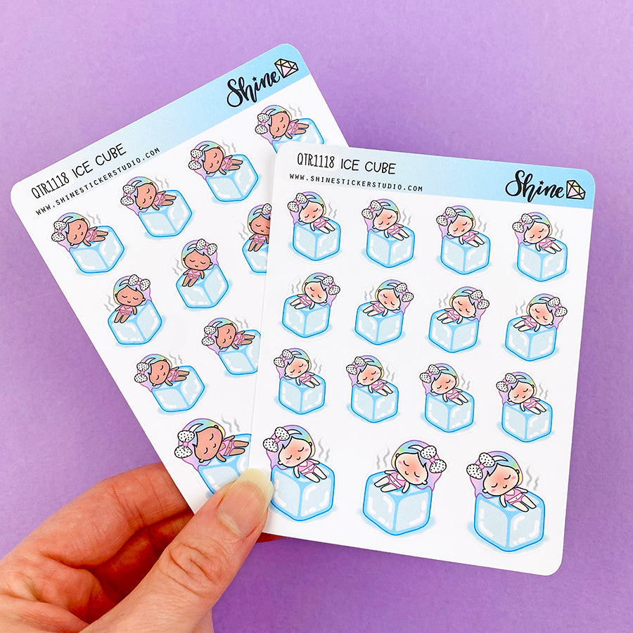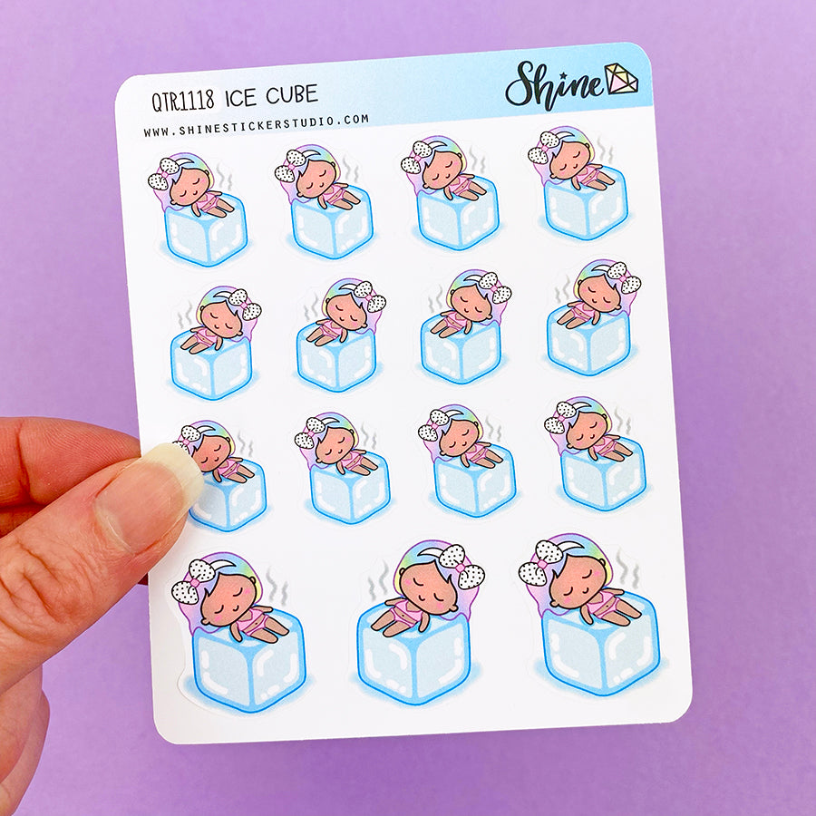This listing is for one sheet of these adorable stickers featuring our character, Luna trying to stay cool while she lays on top of an ice cube.