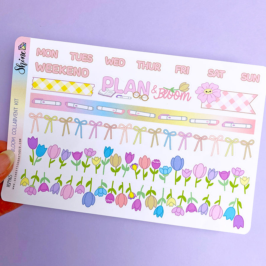 This listing is for a sheet of larger sized stickers featuring elements from our Collabvent kit from 2025. These are designed for bujo planning (bullet journaling) where you can freestyle and get really creative with your planner page decorations. These stickers are larger than our quarter sheet sized deco stickers, and smaller than our die cut stickers. You can even write on some of them!