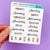 This listing is for one sheet of these lovely weekday stickers that match our Planner Picnic collection. These stickers are about .35" tall. There are enough stickers for three weeks on the sheet. The set on the bottom is abbreviated and sized to fit the Hobonichi weeks monthly pages.