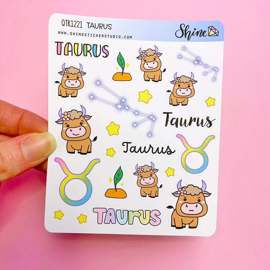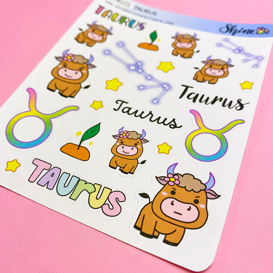 This listing is for one sheet of these cute Taurus themed stickers. Printed on 3.625" x 4.5" sticker paper and kiss-cut for easy removal.