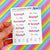 This listing is for one sheet of these cute little pastel Christmas themed weekday stickers. These stickers are .4" tall and the longest one is 1.67". There are enough stickers for three weeks on the sheet. The set on the bottom is abbreviated and sized to fit the Hobonichi weeks monthly pages.